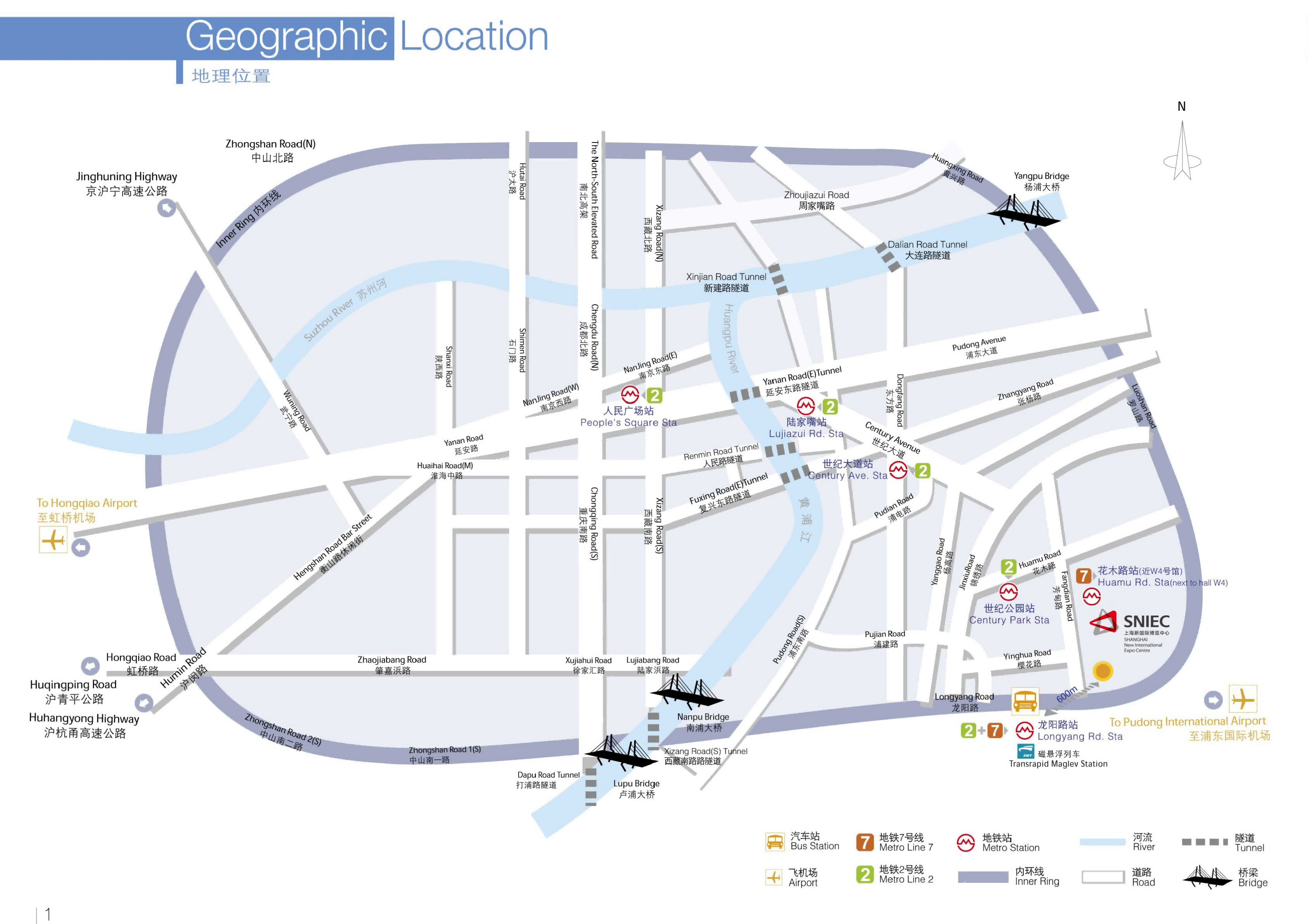 上海新国际博览中心(SNIEC)坐落于上海浦东经济与工业核心发展区。地铁7号线可直达SNIEC,其花木路站紧邻上海新国际博览中心W5号展厅。此外, 大型交通枢纽中心—龙阳路站(位于龙阳路上) 距离SNIEC仅600余米,地铁2 号线、地铁7号线、地铁16号线、地铁18号线、磁浮列车、以及多条公交线路交汇于此,由龙阳路站步行10分钟,即可抵达SNIEC。